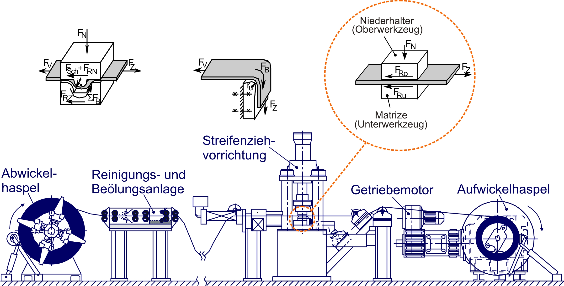 Reibung beeinflusst wesentlich die Verfahrensgrenzen und die Prozessstabilität in der Blechumformung. Beim Reibversuch nach VDA-Richtlinie 230/213 werden nach definiertem Prüfschema Streifenziehversuche in der Flachbahn durchgeführt und die Reibkräfte an Ober- und Unterwerkzeug gemessen.