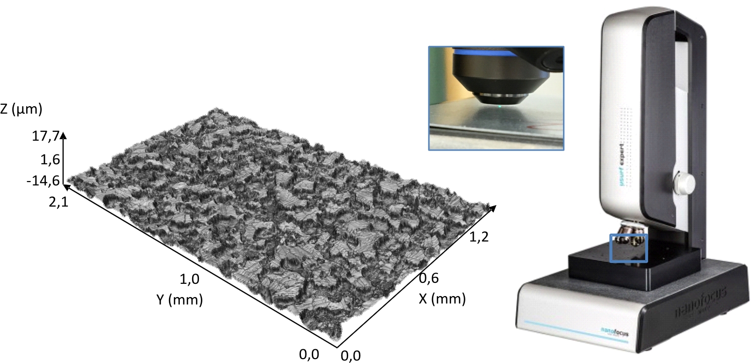 Die Blechoberfläche beeinflusst im Ausgangszustand wesentlich das Umformverhalten und im umgeformten Zustand die Folgeprozesse wie z. B. das lackieren. Zur Oberflächenbewertung werden 2D-Messungen am Tastschnittgerät Hommel T8000 oder 3D-Oberflächenanalysen am Weißlichtinterferometer µSurf durchgeführt.